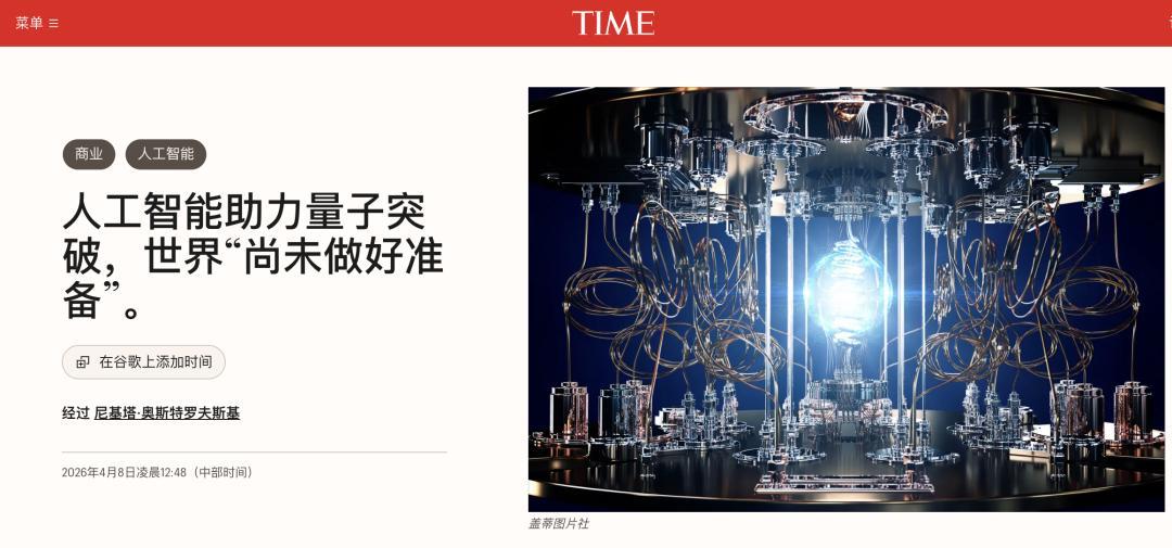第二天,TIME 报道了 Google 和量子计算初创 Oratomic 的最新研究,AI 辅助下的量子计算机破解互联网加密协议的时间可能比预期提前数年。Oratomic 的研究团队使用 AI 工具优化算法,将构建危险量子计算机所需的量子比特数减少了 100 倍。联合创始人 Dolev Bluvstein 说:「我们用了 AI 来加速这项研发,毫无疑问。」